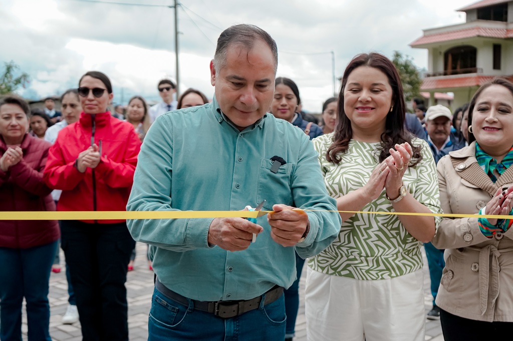 Nuestros estudiantes ya no volverán a enlodarse los zapatos al transitar por esta calle”, manifestó el alcalde Dr. Gabriel Zuñiga al inaugurar el adoquinado de la calle Magda Sánchez que nace en el centro parroquial de Cotaló y llega hasta la unidad educativa de la parroquia.