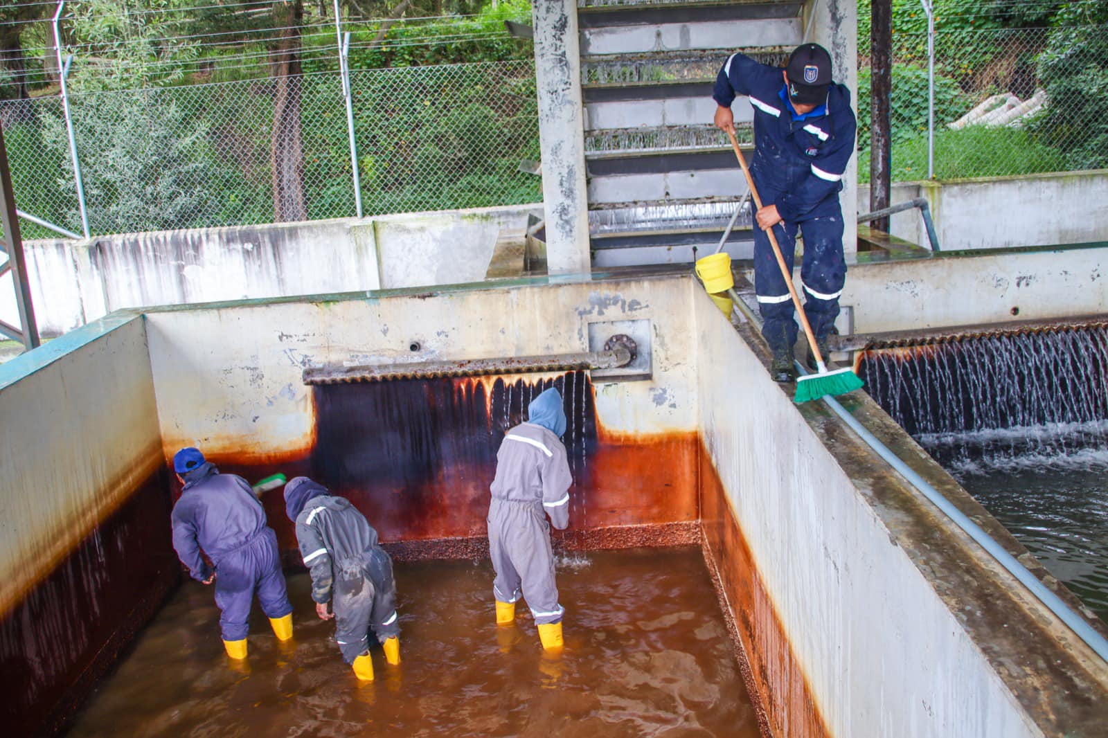 La intervención se cumplió en todo el sistema, desde las bandejas de aireación, los filtros y la zona de distribución del líquido vital, mediante un procedimiento de retro lavado que garantiza el suministro adecuado a los usuarios.