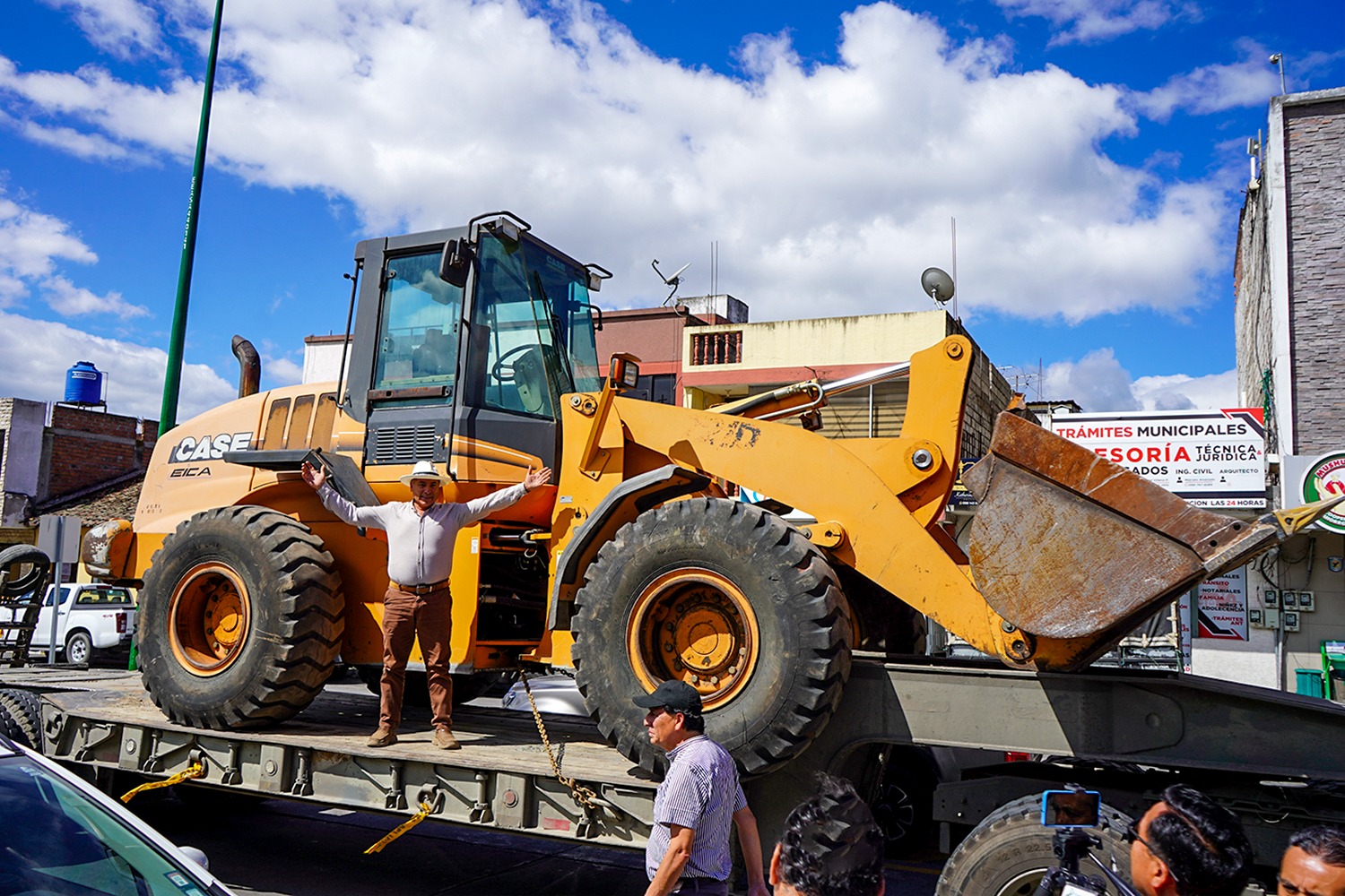 “𝗧𝗿𝗮𝗯𝗮𝗷𝗮𝗺𝗼𝘀 𝗰𝗼𝗻 𝗵𝗲𝗰𝗵𝗼𝘀 𝘆 𝗻𝗼 𝗰𝗼𝗻 𝗽𝗮𝗹𝗮𝗯𝗿𝗮𝘀”, destacó la primera autoridad municipal al recibir la maquinaria, misma que se pondrá al servicio del pueblo de manera inmediata; por ello, anunció que la municipalidad trabajará para adquirir nuevo equipo caminero que permita solventar la demanda ciudadana.
