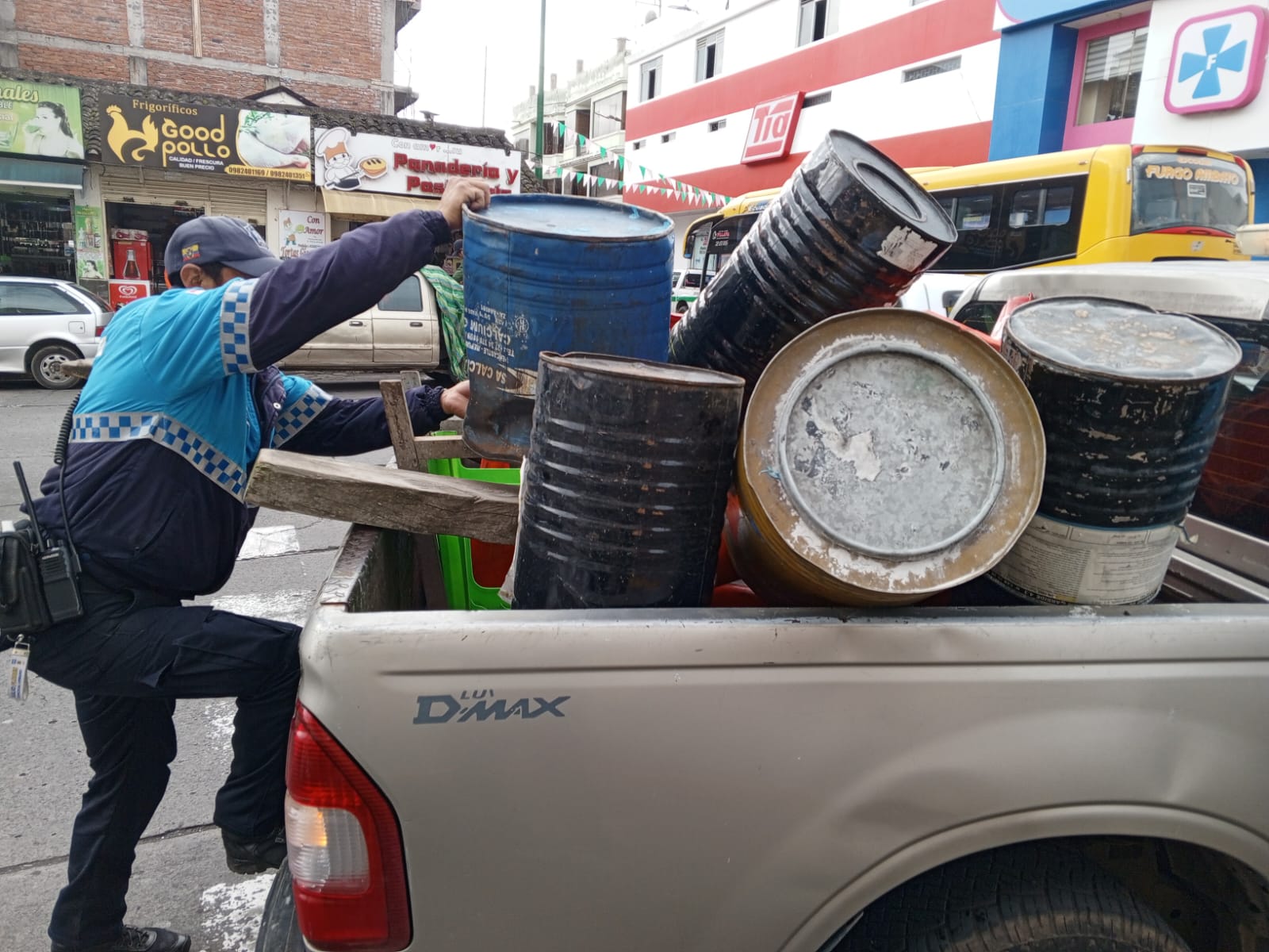 Con base al Art. 2 de la 𝗢𝗿𝗱𝗲𝗻𝗮𝗻𝘇𝗮 𝗾𝘂𝗲 𝗿𝗲𝗴𝘂𝗹𝗮 𝗹𝗮 𝗢𝗰𝘂𝗽𝗮𝗰𝗶ó𝗻 𝗱𝗲 𝗹𝗮 𝘃í𝗮 𝗽ú𝗯𝗹𝗶𝗰𝗮 𝗲𝗻 𝗲𝗹 𝗰𝗮𝗻𝘁ó𝗻 𝗦𝗮𝗻 𝗣𝗲𝗱𝗿𝗼 𝗱𝗲 𝗣𝗲𝗹𝗶𝗹𝗲𝗼; Agentes de control municipal retiraron conos, taques, sillas, pallets, cajas y bancos ubicados en la calzada de las calles de Pelileo, que obstaculizan el libre estacionamiento de los vehículos y generan inconvenientes a la circulación vehicular.