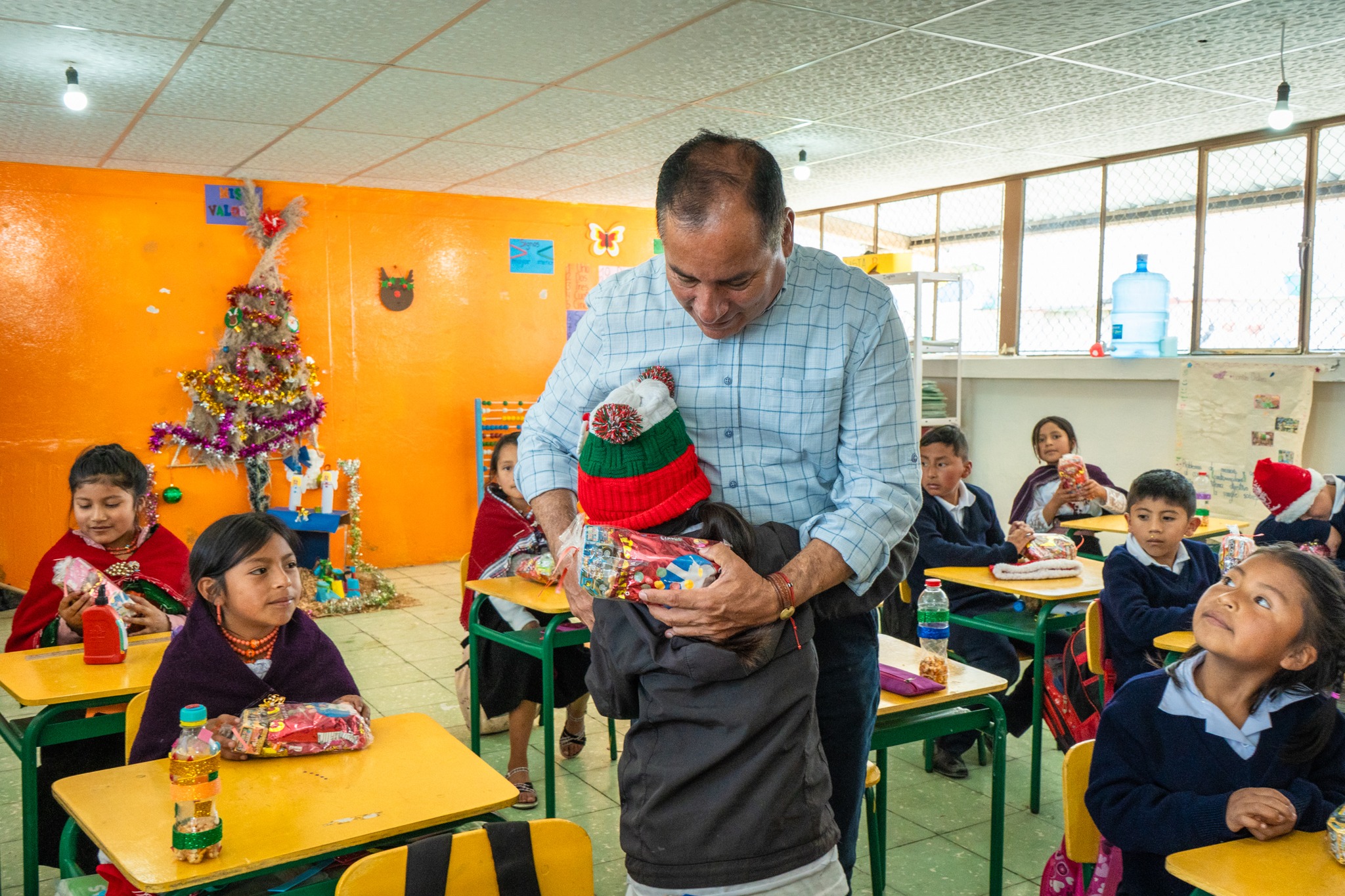 El alcalde Gabriel Zúñiga compartió un gesto de solidaridad y esperanza con los estudiantes y docentes de la Unidad Educativa Eugenio Espejo de la parroquia El Rosario, mediante la entrega de un pequeño agasajo navideño y el mensaje de amor y regocijo que trae el nacimiento de Jesús a la humanidad.