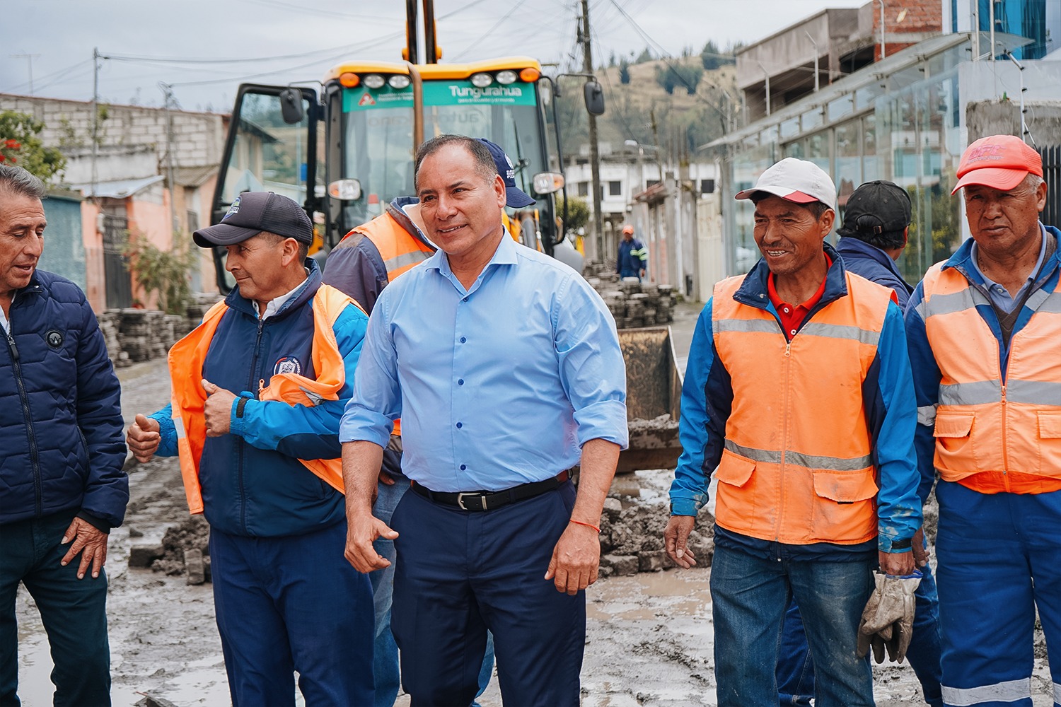 El Alcalde Dr. Gabriel Zúñiga con el equipo técnico verificó los trabajos, para que se realicen con materiales adecuados y en el menor tiempo posible, mejorando la vía sin ocasionar molestias a la ciudadanía.