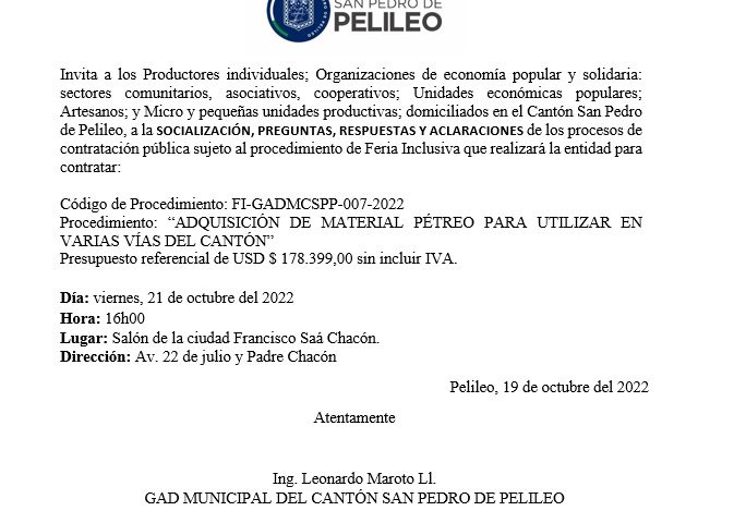 Ver Más Avanza la construcción del intercambiador vial a la altura de la ex-empresa eléctricaLanzamiento de la marca turística «Descubre Pelileo», como sitio turístico de destino en nuestro país