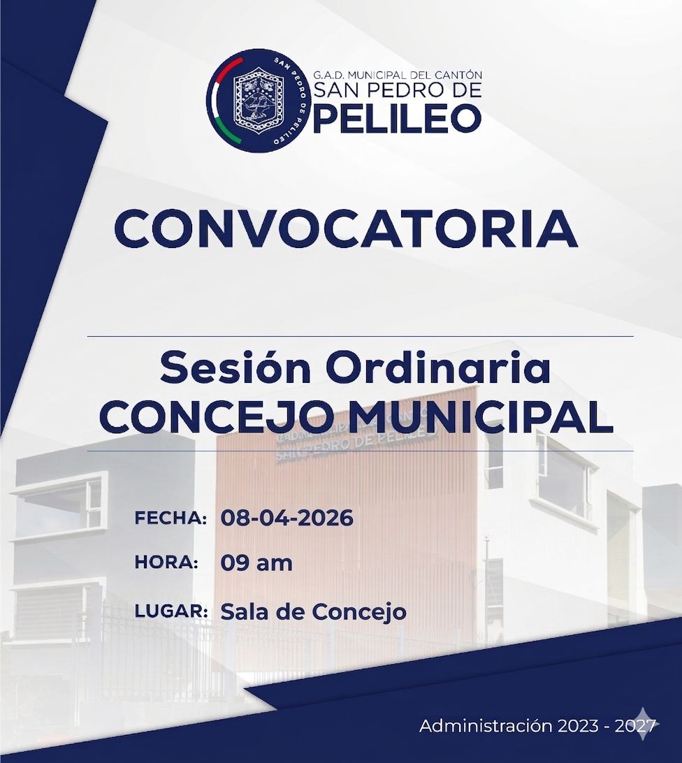 Noticias Slider CONVOCATORIA A SESION ORDINARIA DE CONCEJO 08-04-2026 gadpelileo 2 abril, 2026 No Comments CONVOCATORIA SESION ORDINARIA CONCEJO MIERCOLES 08-04-2026001Descarga