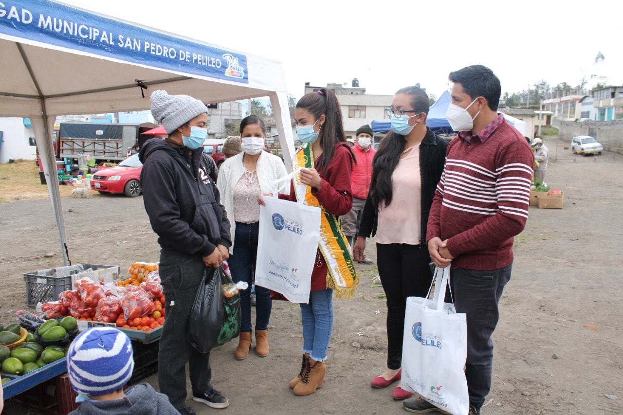 La Unidad de Economía Popular y Solidaria del GAD Municipal de #Pelileo, apoya la reactivación de la Feria Productiva de la parroquia #Huambaló, mediante la entrega de bolsos biodegradables para el proceso de comercialización y evitar el uso de fundas plásticas.