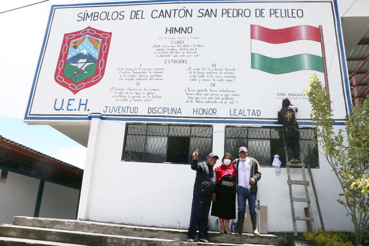 Con el objetivo de fortalecer los valores cívicos en los estudiantes y la ciudadanía del cantón #Pelileo, la Concejal Elena Masaquiza entregó oficialmente a las autoridades de las instituciones educativas del cantón los murales con los símbolos cantonales (bandera, escudo e himno cantonal) que fueron pintados en lugares visibles de los establecimientos educativos.