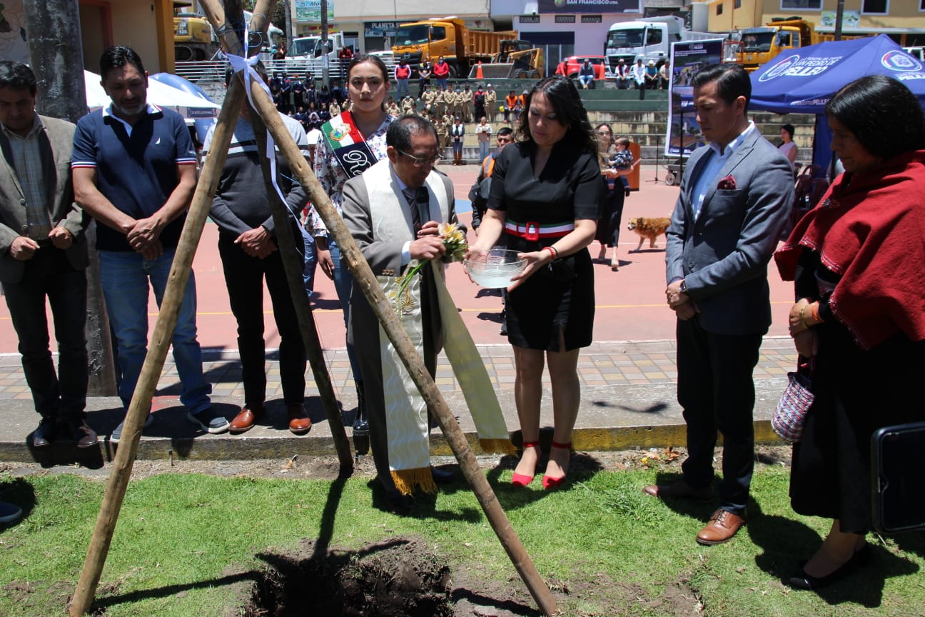 La colocación de la primera piedra, marcó el inicio de los trabajos de intervención en el parque central de la parroquia #Huambaló, a fin de ofrecer un espacio de comodidad y recreación para sus habitantes y turistas.